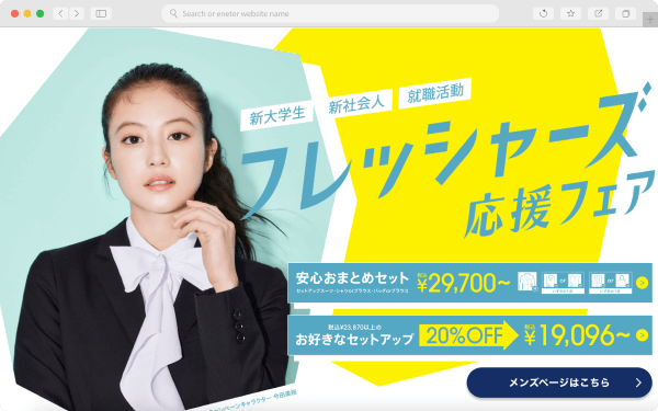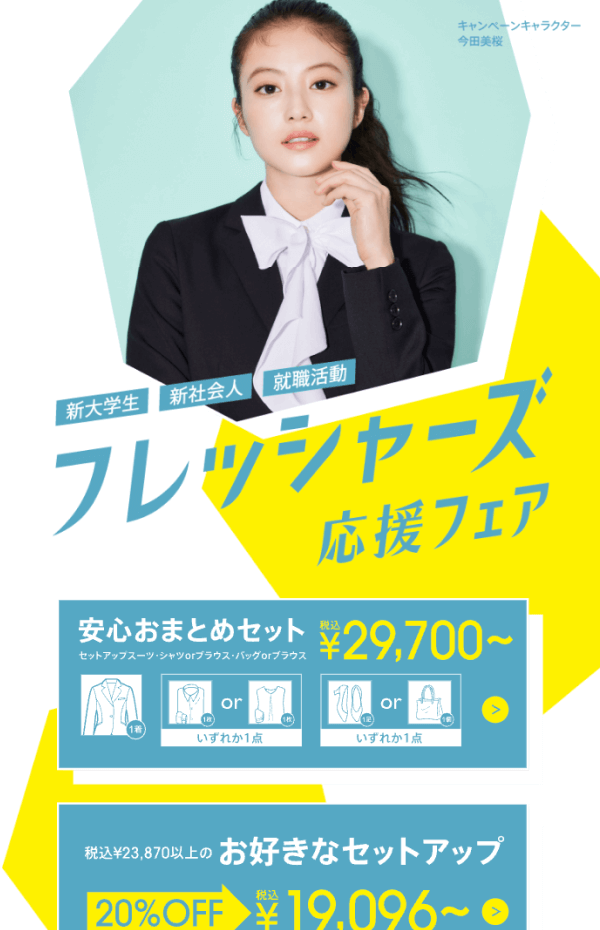 ターゲットである新社会人とその親に向けて、清潔感と親しみやすさを意識したデザインにしました。キャンペーン内容がスムーズに伝わるよう、視線誘導や要素のメリハリにも配慮しています。 -